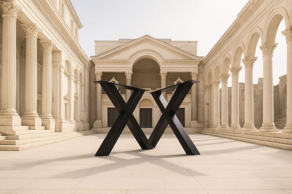 Le Vulkrum Domus sono gambe in ferro dal carattere deciso: telai sospesi che creano un design geometrico unico, unendo solidità artigianale e stile industriale moderno.