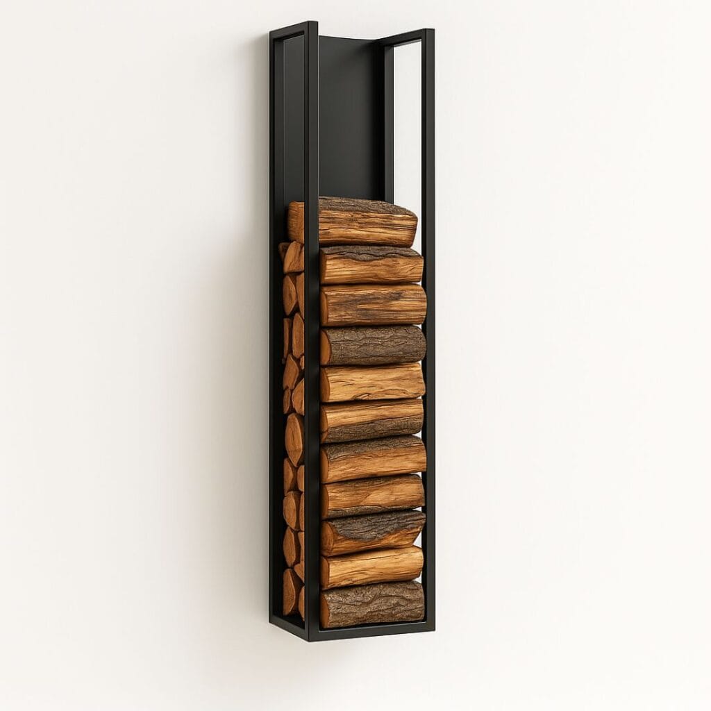 Eleganza minimale: il porta legna in ferro slim da parete, ideale per ottimizzare lo spazio con un design moderno e funzionale.